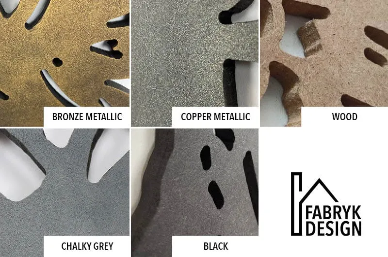 Onze geometrische vormen zijn gemaakt van 9mm dik MDF en worden uit een stuk gefreesd. Het FBRK. Cow is maar liefst verkrijgbaar in 5 kleuren, 2 originele kleuren: door en door zwart MDF of neutraal MDF. Kies je voor een van onze 3 waxkleuren dan komt dit op zwart MDF.