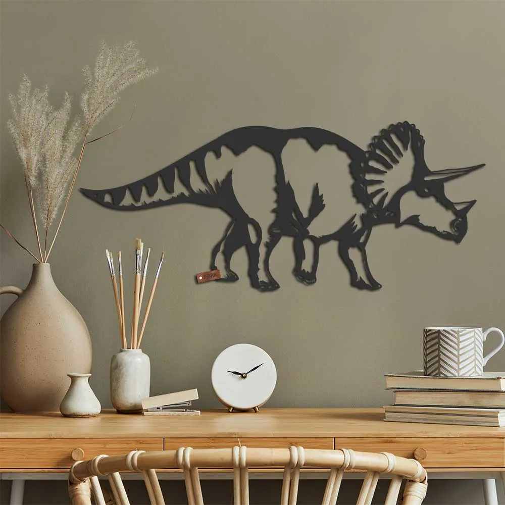 Hoe leuk is deze nieuwe geometrische vorm van Dino Tim. Ook de triceratops is meegenomen in onze nieuwe designs en vormt een leuk stel met Dino Bob en Rex. Tim is een hele lieve maar natuurlijk ook stoere Dino die alleen planten eet, deze houten decoratie staat leuk op de kinderkamer en tienerkamer. Heb je bijvoorbeeld nog een witte muur neem dan een zwarte kleur, hierdoor komt de geometrische vorm nog beter uit! Ben je toch opzoek naar iets ander? Wij hebben een uitgebreid assortiment waardoor er altijd wel iets passends bij zit voor jouw interieur.