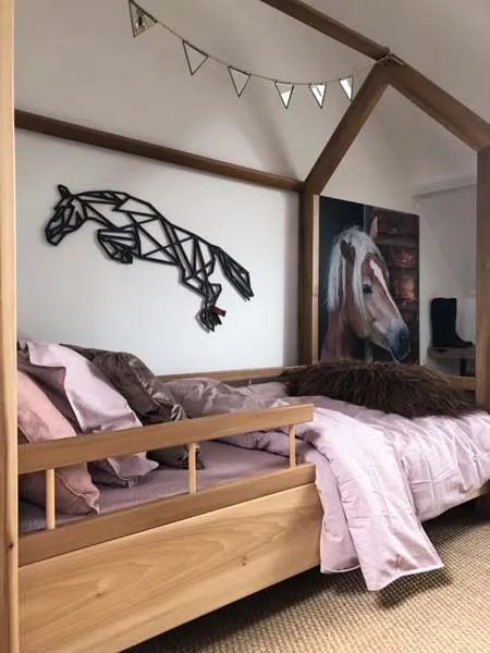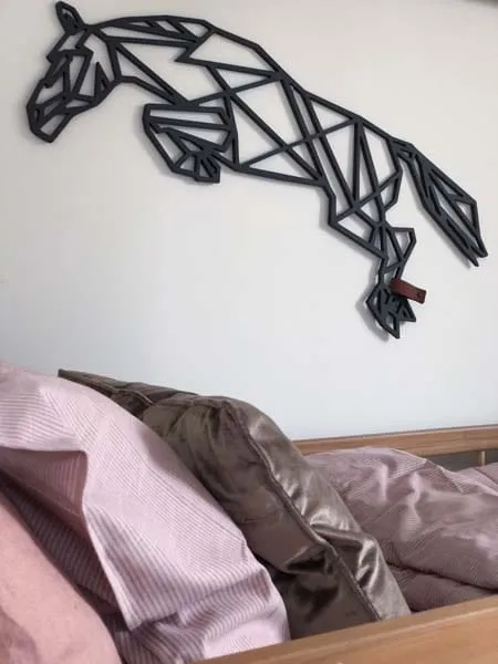 Maak kennis met de Houten Wanddecoratie Springend Paard van FBRK. Ben je opzoek naar een unieke decoratie voor aan de muur? Dit prachtige dier is gefreesd uit hout en een echte eye-catcher voor in de kamer! Deze geometrische wanddecoratie zal zeker shinen aan de muur! Omdat natuurlijke materialen een fijne sfeer geven, krijgen houten accessoires steeds vaker de voorkeur in het interieur. En omdat geometrische vormen zo uniek zijn, is het een origineel cadeau voor bijvoorbeeld een house-warming. Super leuk om te geven, maar nog leuker om te krijgen!