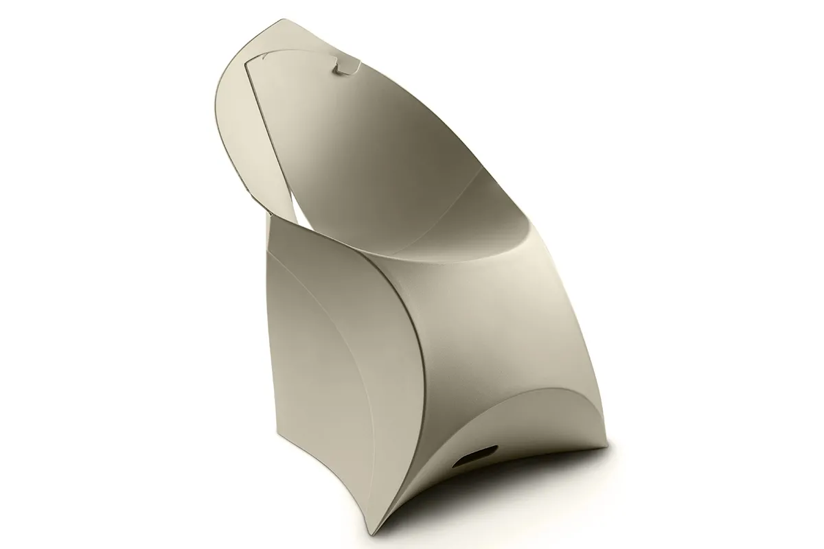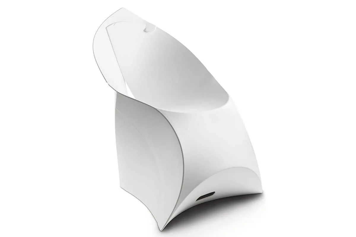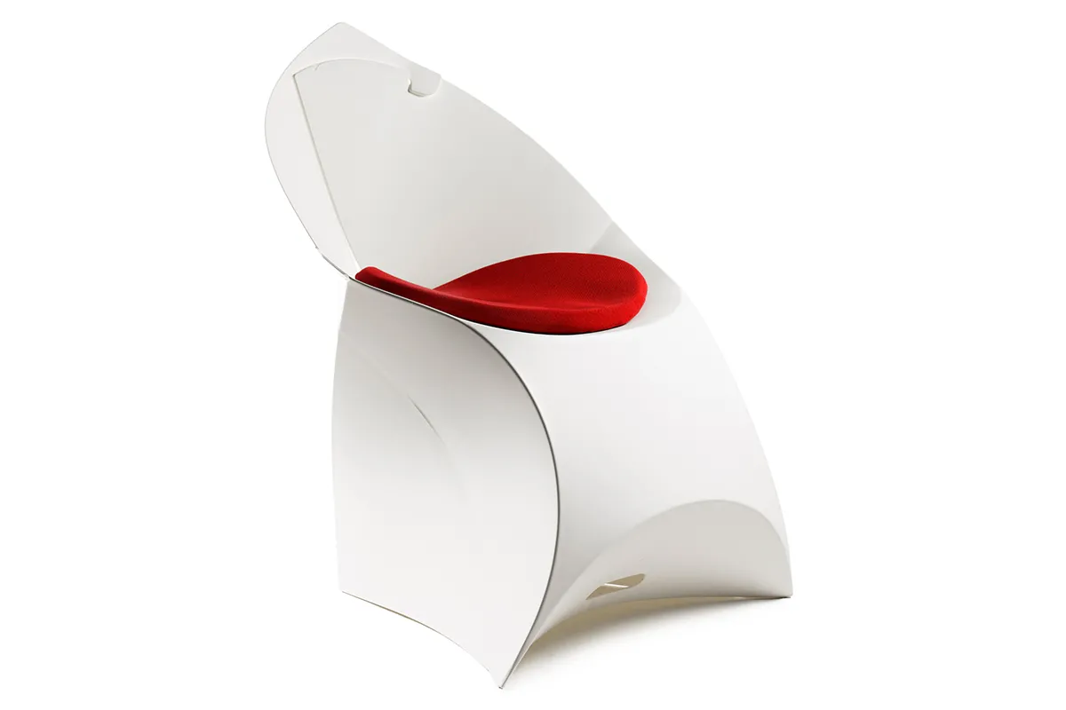 Mooie opvouwbare design stoel van de Nederlandse designers Tom Schouten en Douwe Jacobs. Door het ingenieuze ontwerp vervoer je deze stoel plat opgevouwen. Op locatie (bijvoorbeeld op je beursstand) hoef je deze vervolgens alleen nog maar in elkaar te vouwen waarna een stoel ontstaat met een verrassend goed zitcomfort.